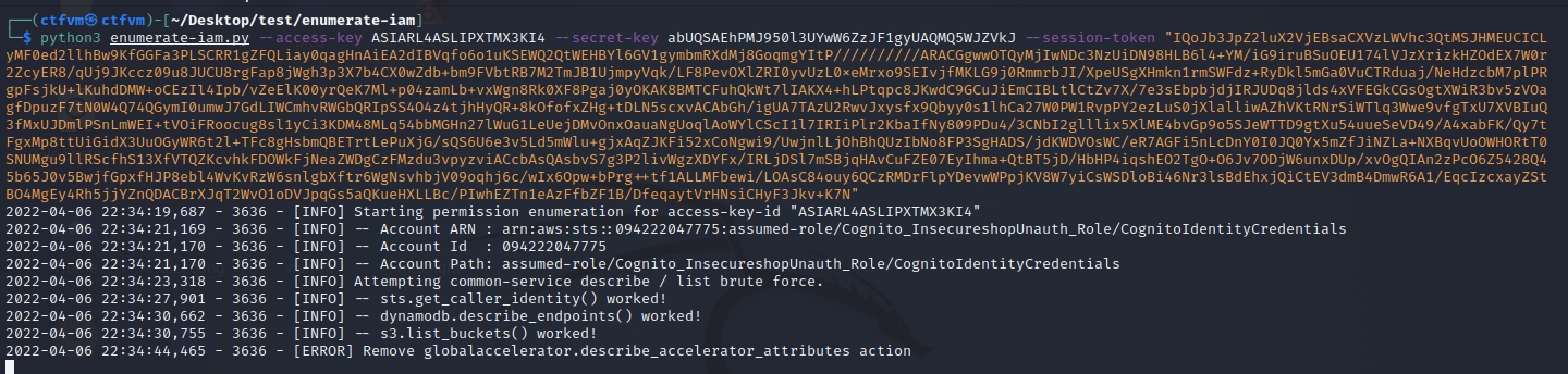Afterwhich, weβll use the following script (https://github.com/andresriancho/enumerate-iam) to enumerate permissions with the credentials that we have.