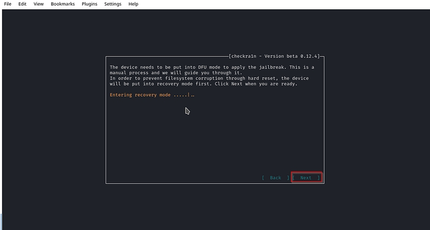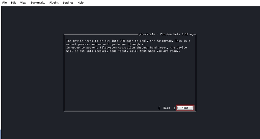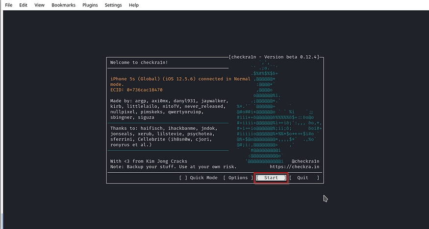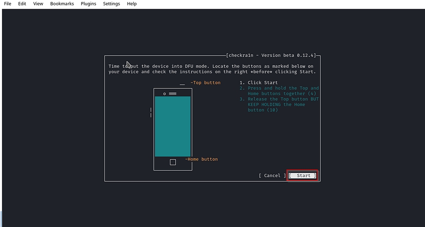 command to start the checkra1n tool.Click the “Start” button in the checkra1n interface. This will put your device into recovery mode.